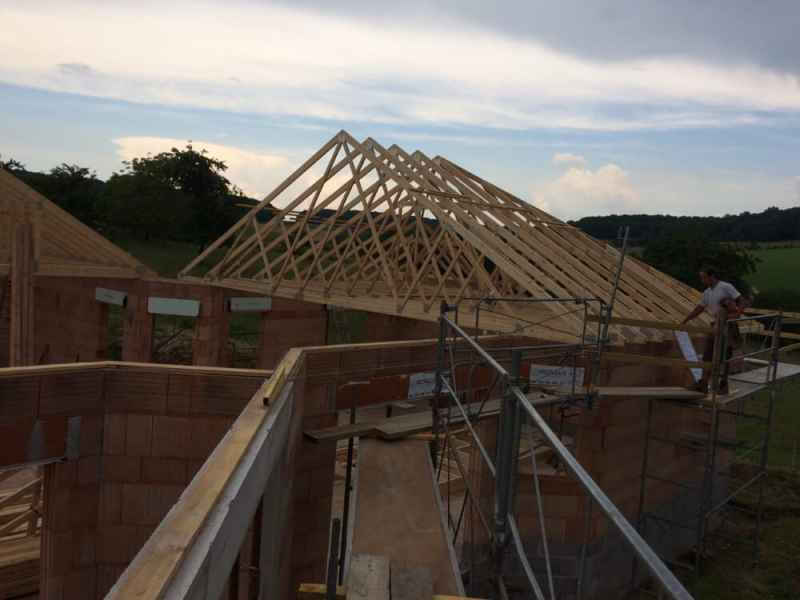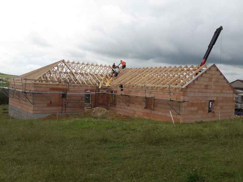 Charpente industrielle (fermettes combles perdus, fermettes combles aménageables) et plus rarement fermettes sur dalle
