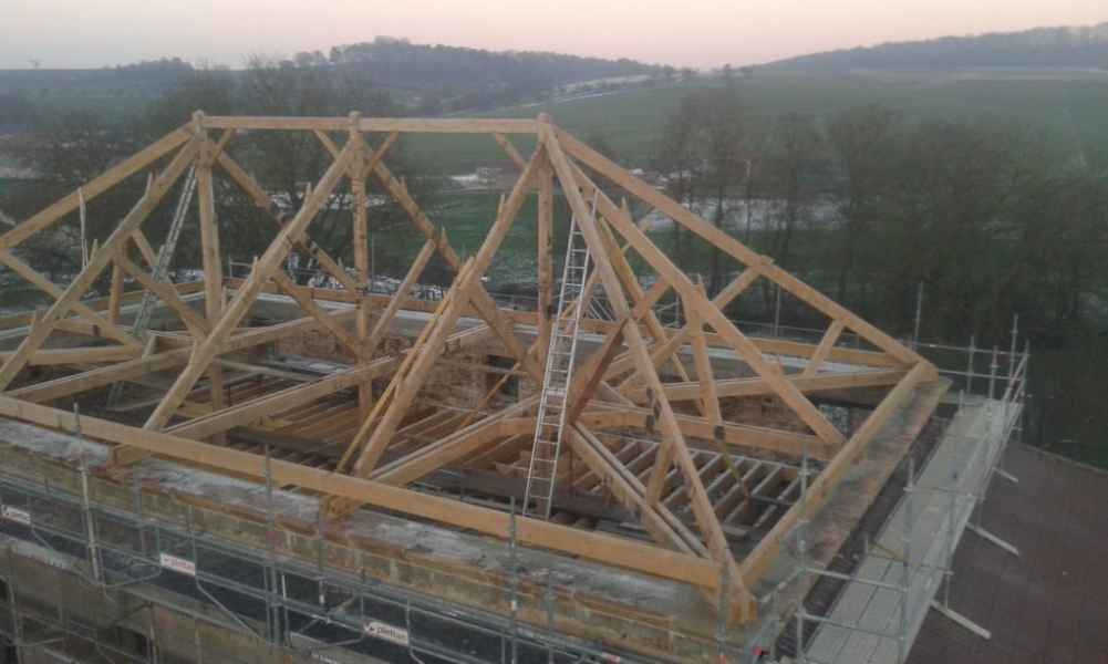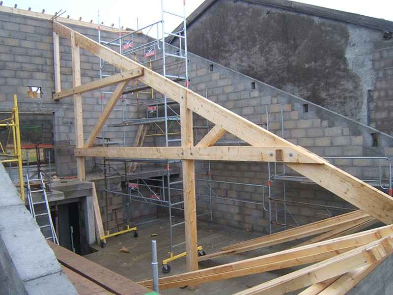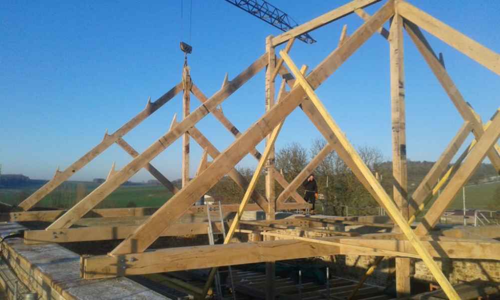 Charpente traditionnelle et lamellé collé (fermes sur entraits porteurs, fermes sur poteaux, fermes sur blochets, fermes de noues, fermes d’arêtiers et appentis ) par mortaises, tenons, chevillages, moisages embrevements.